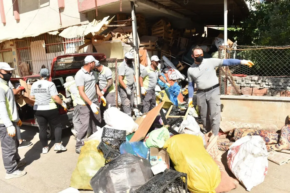 A.Ş. ve E.Ş. çiftine ilişkin 6 katlı binada Temizlik İşleri Müdürlüğü, Zabıta Müdürlüğü, Sağlık İşleri Müdürlüğü gruplarının iştirakiyle kapsamlı paklık çalışması yürütüldü.