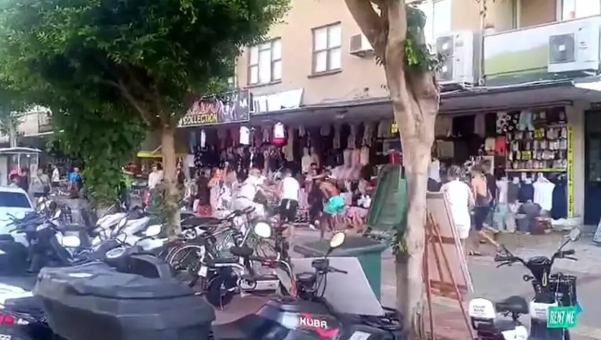 Dükkan önünde oturan İngiliz turistler ve bir işletme çalışanı ortasında başlayan konuşma bir anda arbedeye dönüştü. Esnafın etrafını çeviren 6 İngiliz turistler evvel esnafa baş attılar sonra yumruklamaya ve yerde tekmelemeye başladılar. Etraf esnaf, olaya müdahale edince arbede büyüdü. Bir İngiliz turistin yerde bulunan parke taşını alarak esnafa attığı gözlenirken, esnaf ise kendilerini şemsiyeler ile savundu.