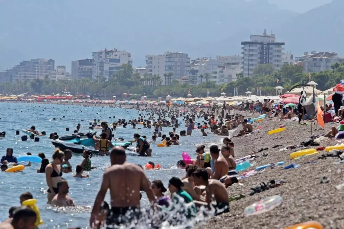 Antalya‘da termometreler 45 dereceyi gösterdi, sıcak havadan bunalanlar kendilerini denize attı. Kentteki deniz suyu sıcaklığının da artış gösterip 32 dereceye kadar çıktı.
