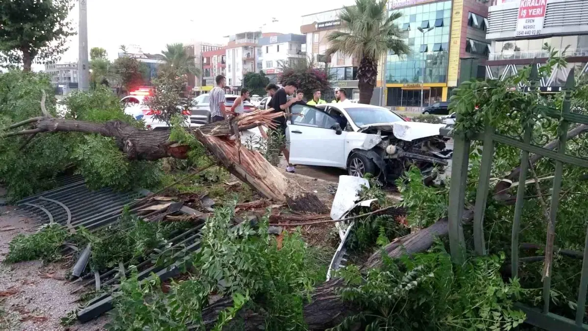 Antalya’da direksiyon hakimiyetini kaybeden şoför orta refüjde bulunan ağaç ve bariyere çarptı. Çarpmanın şiddetiyle karşı şeride yıkılan ağaç, 2 aracın daha kaza yapmasına neden oldu. Kazada baht yapıtı kimsenin burnu bile kanamadı.