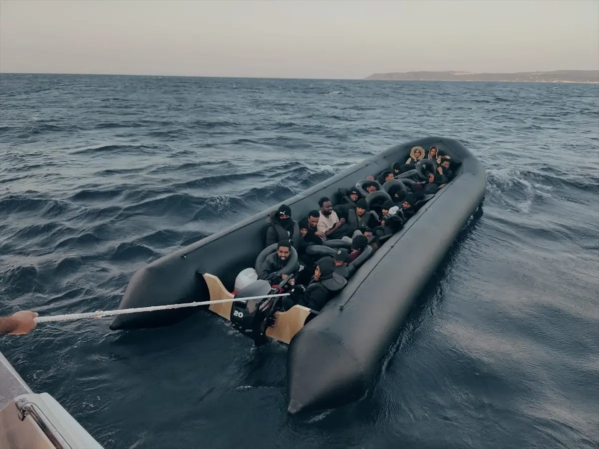 İzmir’in Çeşme ilçesi açıklarında sürüklenen lastik bottaki 3’ü çocuk 34 sistemsiz göçmen kurtarıldı.