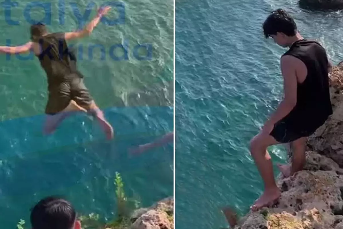 Antalya‘nın Konyaaltı ilçesi bayram tatilinde acı bir olaya sahne oldu. Arkadaşlarıyla birlikte falezlere çıkan bir genç, metrelerce yükseklikten denize atlayarak sert bir halde suya çakıldı.