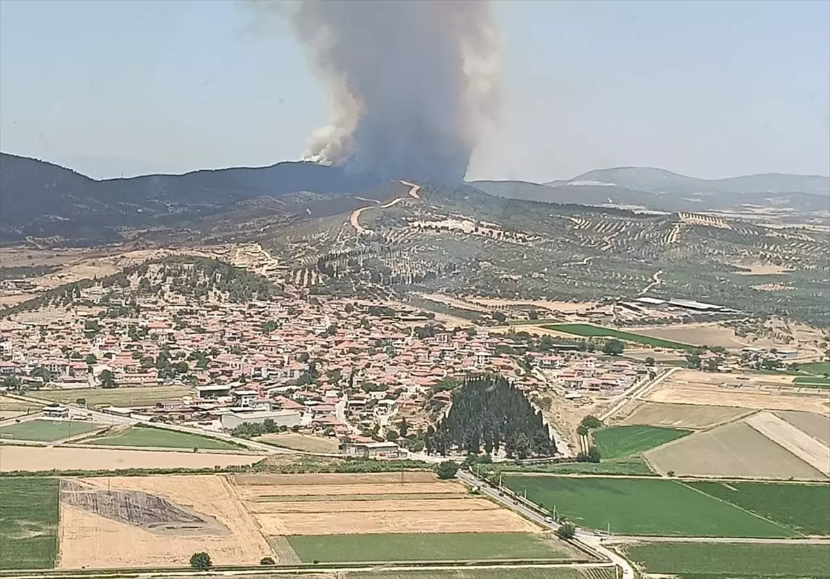 İhbar üzerine İzmir Orman Bölge Müdürlüğüne ilişkin 11 uçak, 13 helikopter, 32 arazöz, 10 su ikmal ve 5 dozer sevk edildi.