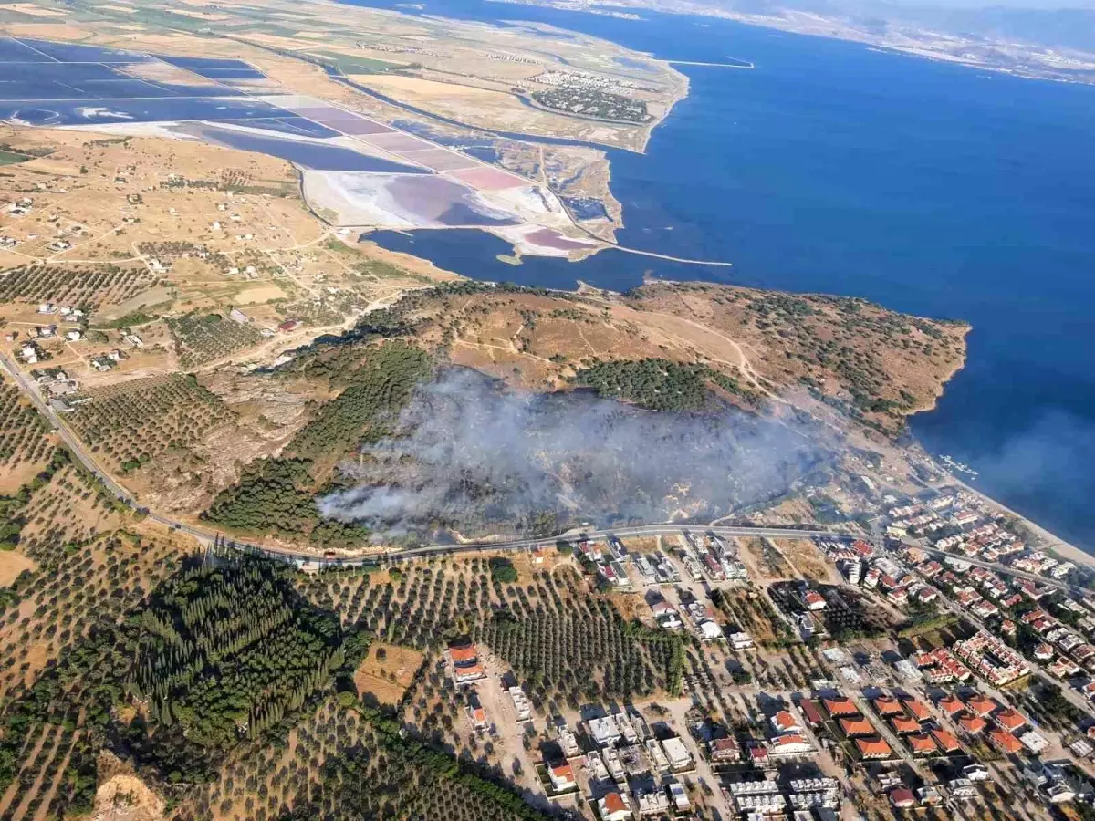 Yangın, saat 17.45’te Çandarlı Mahallesi’nde orman dışı alanda başladı. Şimdi bilinmeyen sebeple çıkan yangına İzmir Orman Bölge Müdürlüğü 6 uçak, 3 helikopter ile havadan 13 arazöz, 2 su ikmal ve 2 dozerle karadan müdahale başladı.