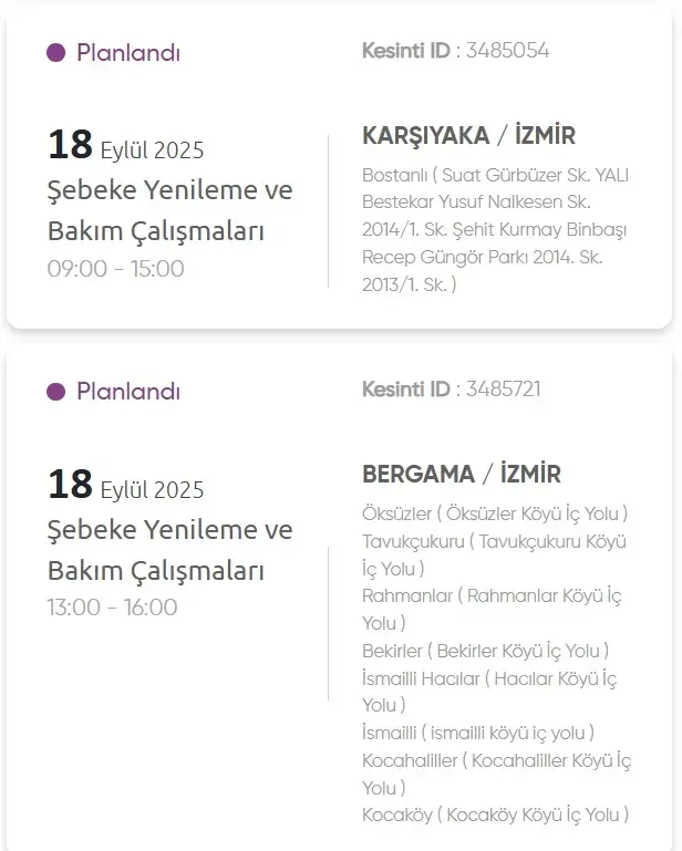 İzmir elektrik kesintileri listesi yayınlandı. İşte İzmir’de elektrik kesintileri: