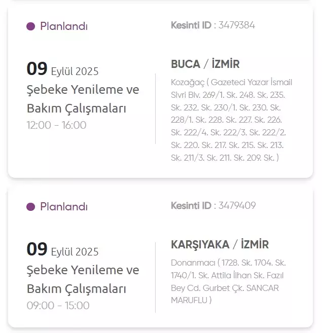 İzmir elektrik kesintileri listesi yayınlandı. İşte İzmir’de elektrik kesintileri: