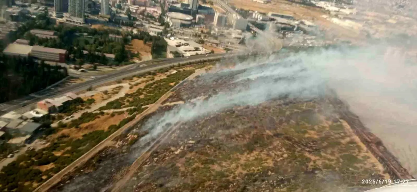 İzmir’in Bornova ilçesinde makilik ve otluk alanda çıkan yangına havadan ve karadan müdahale ediliyor.
