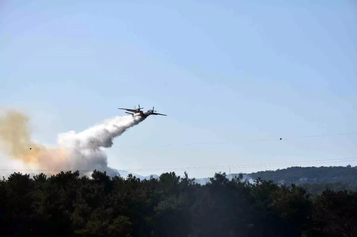 Dün öğlen saatlerinde Yakaköy mevkiinde tarım toprağında başlayan daha sonra ormanlık alana sıçrayan yangın, rüzgarın tesiriyle büyüdü. İzmir Orman Bölge Müdürlüğü’ne bağlı 8 uçak ve 17 helikopterle havadan, 22 arazöz, 7 su ikmal ve 5 dozerle karadan müdahale ederken meydana gelen yangında birinci belirlemelere nazaran 3 mesken yandı. Orman yangınına, çatı tamiratının sebep olduğu, olayla ilgili 3 kişinin gözaltına alındığı bildirildi.