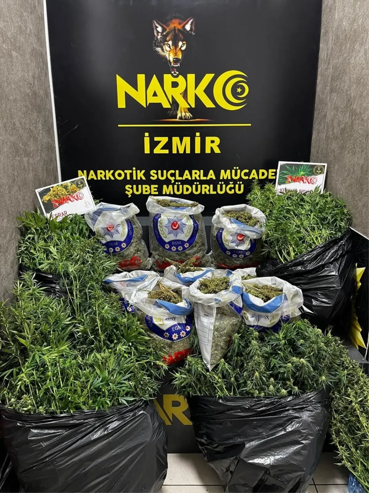 Aramalarda meskenlerin odalarında sera düzeneği kurulduğu tespit edildi, 9 kilo 350 gram esrar ve 212 kök kenevir bitkisi ele geçirildi.