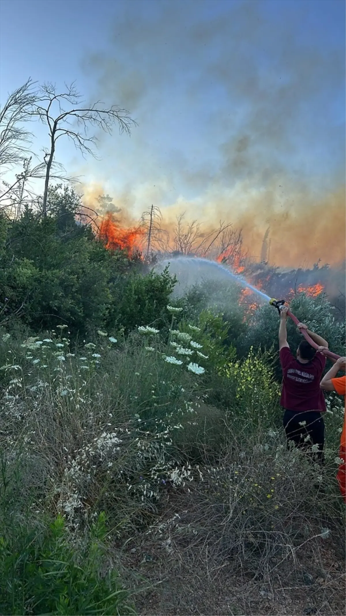 Bölgede soğutma çalışması yapılıyor.