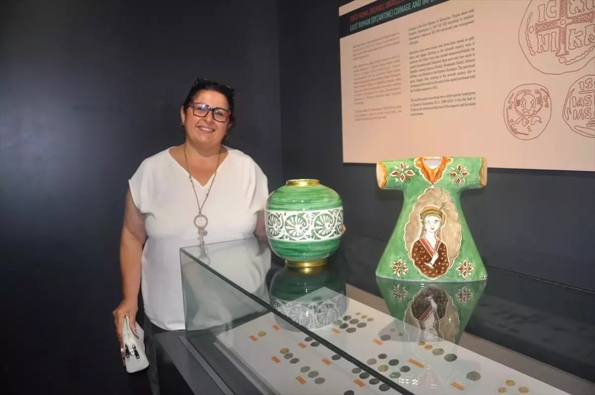 İzmir’in Ödemiş ilçesinde bayan kursiyerlerin hazırladığı çini yapıtları sergilendi.